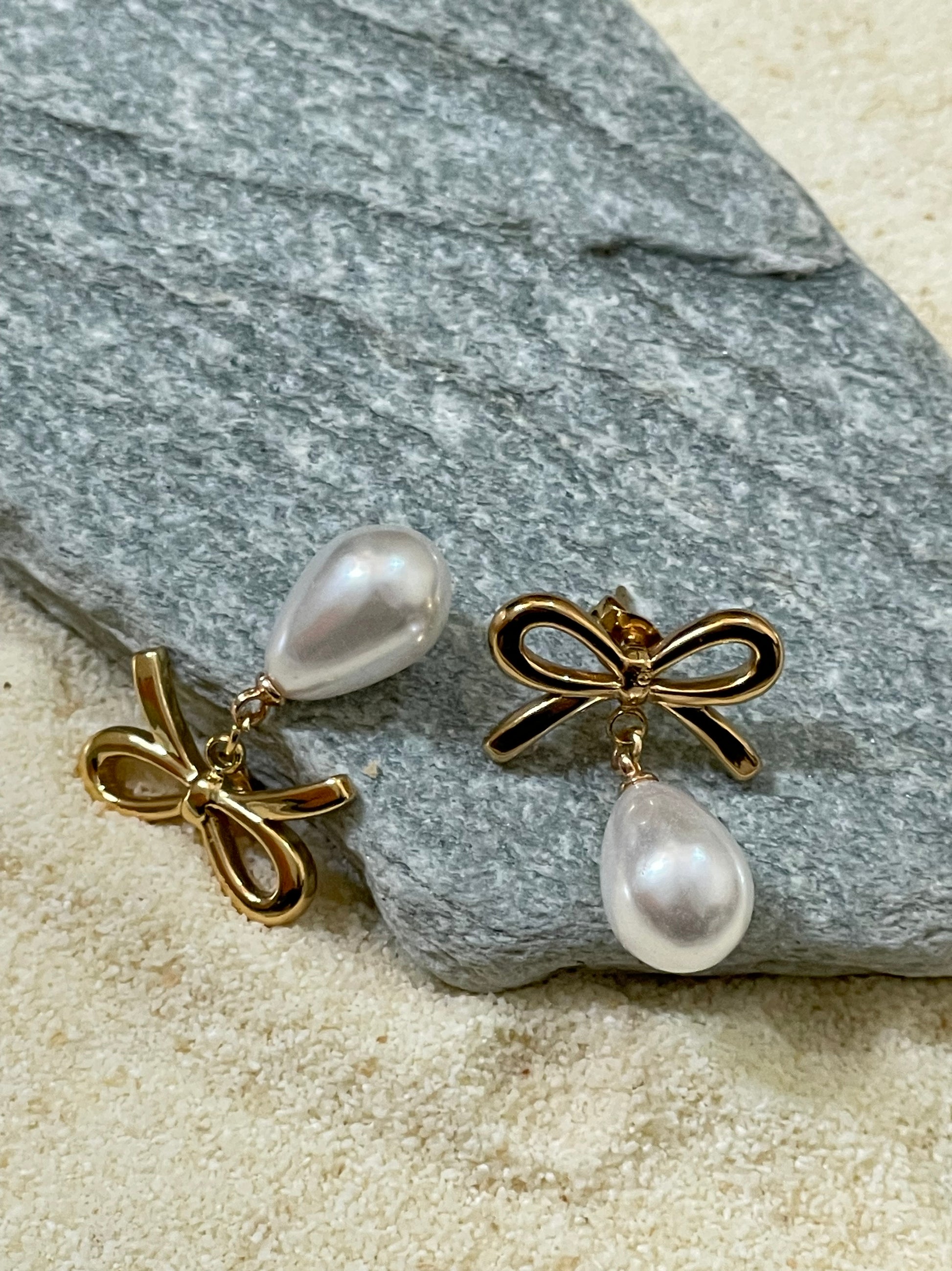 Pearl Bow Drop Earrings