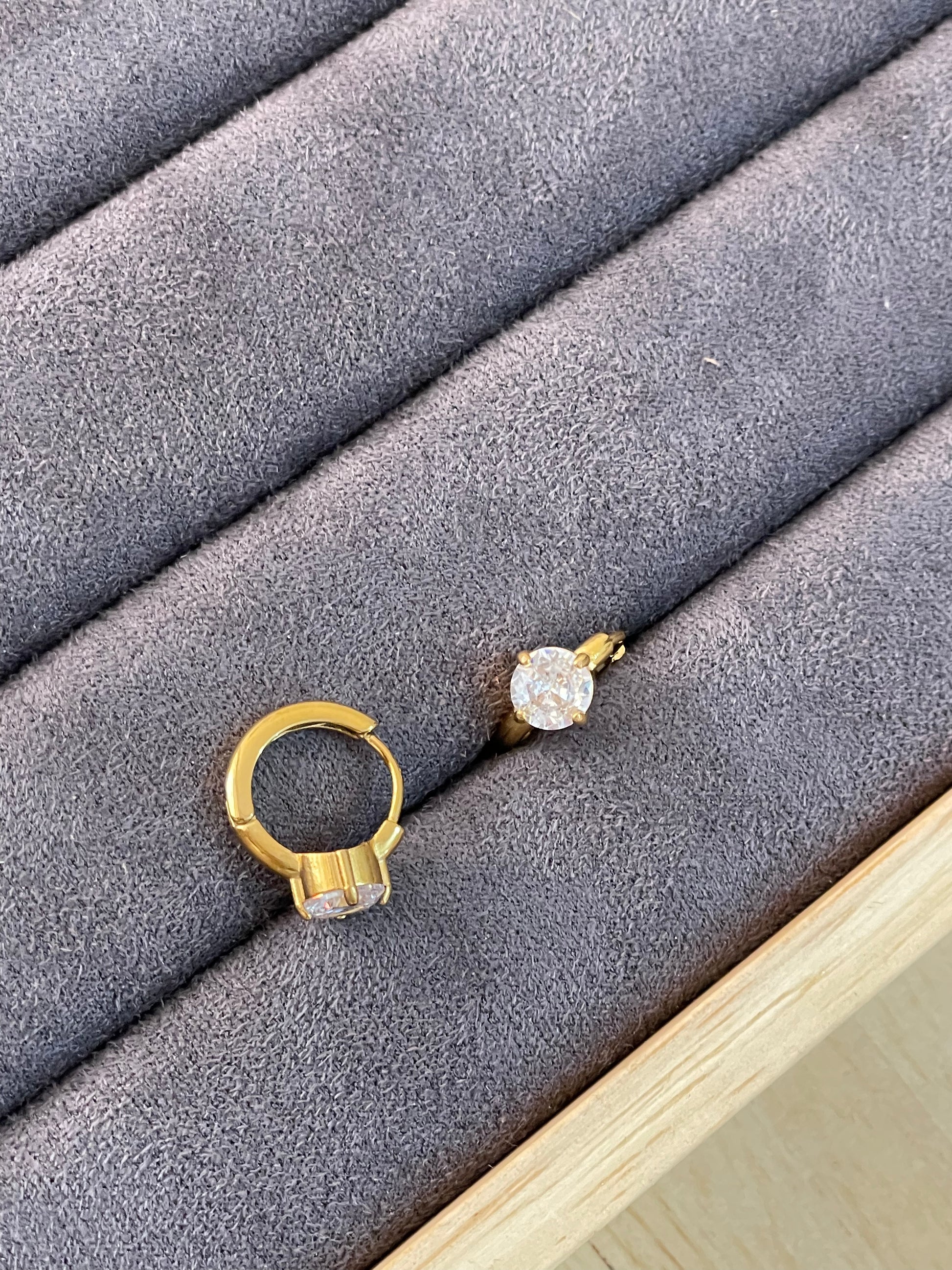 Solitaire Huggie Hoop Earrings.